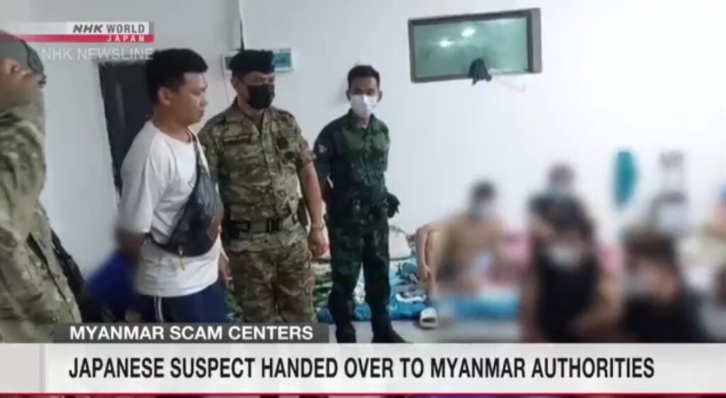 แหล่งข่าวเปิดเผยว่า เมื่อเดือนที่แล้ว รัฐบาลญี่ปุ่นได้ขอความช่วยเหลือจากทางการไทย เนื่องจากเชื่อว่าผู้ต้องสงสัยทั้งสองคนมีส่วนเกี่ยวข้องกับขบวนการต้มตุ๋นหลอกลวงในเมียนมา โดยชายสองคนนี้พักอยู่ในสถานที่เดียวกันกับที่ที่นักเรียนมัธยมปลายจากจังหวัดไอจิ ตอนกลางของญี่ปุ่น ถูกนำตัวมาคุ้มกันในไทยเมื่อเดือนที่แล้ว หลังจากถูกบังคับให้เข้าร่วมขบวนการต้มตุ๋นหลอกลวงในเมียนมา ตำรวจไทยระบุ เตรียมสอบปากคำผู้ต้องสงสัยทั้ง 2 คนนี้ รวมทั้งเรื่องที่ว่าพวกเขาเข้าร่วมการต้มตุ๋นหลอกลวงโดยสมัครใจ หรือถูกล่อลวงให้เข้าร่วมขบวนการ.-815.-สำนักข่าวไทย