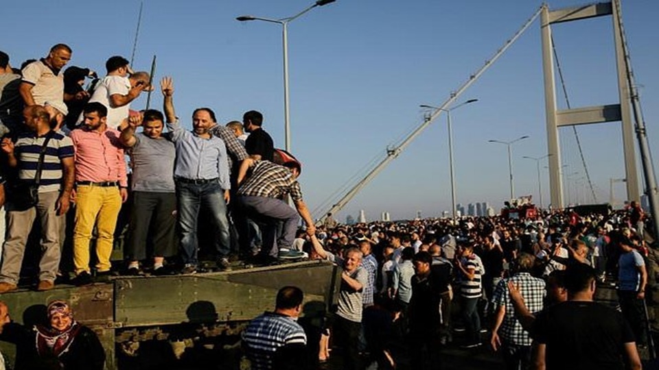 กลุ่มกบฏที่หวังยึดอำนาจการปกครองปะทะกับกลุ่มผู้สนับสนุนประธานาธิบดีเรเจพ ทายยิพ แอร์โดอานเมื่อคืนวันที่ 15 กรกฎาคมปีก่อนบนสะพานแห่งนี้ที่รัฐบาลได้เปลี่ยนชื่อในเวลาต่อมาเป็นสะพานผู้พลีชีพ 15 กรกฎาคม ผู้จัดการหาเสียงเลือกตั้งของประธานาธิบดีเสียชีวิตบนสะพานแห่งนี้พร้อมบุตรชายขณะที่กลุ่มทหารกบฏกราดยิงใส่ประชาชนที่ออกมาต่อต้านการก่อกบฏ มีประชาชนเสียชีวิต 34 คน ทหารกบฏเสียชีวิต 7 นาย ก่อนที่ทหารกบฏยอมแพ้ในเช้าวันรุ่งขึ้น สำนักข่าวอะนาโดลูของตุรกีรายงานอ้างคำฟ้องหนา 1,052 หน้าว่า อดีตเจ้าหน้าที่กองทัพ 143 คนถูกตั้งข้อหาหลายกระทง ตั้งแต่ฆาตกรรมไปจนถึงพยายามล้มล้างรัฐบาลและรัฐสภา หากถูกตัดสินว่ามีความผิดจะถูกตัดสินประหารชีวิต 37 กระทง