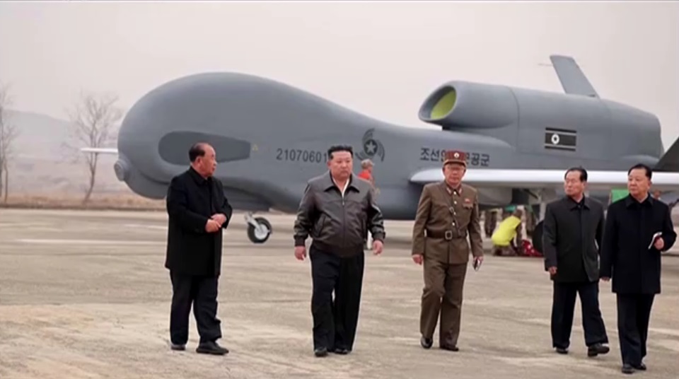 สำนักข่าวกลางเกาหลี หรือ เคซีเอ็นเอ ของทางการเกาหลีเหนือรายงานว่า นายคิม ตรวจสอบโดรนลาดตระเวณรุ่นใหม่ที่ปรับปรุงให้มีประสิทธิภาพดีขึ้น ซึ่งมีความสามารถในการตรวจจับเป้าหมายทางยุทธวิธีและกิจกรรมของศัตรูที่หลากหลายทั้งในภาคพื้นดินและในทะเล เคซีเอ็นเอ รายงานอ้างคำกล่าวของนายคิมที่ระบุว่า การพัฒนาอุปกรณ์ไร้คนขับและปัญญาประดิษฐ์ควรเป็นสิ่งสำคัญสูงสุดในการปรับปรุงกองทัพให้ทันสมัย