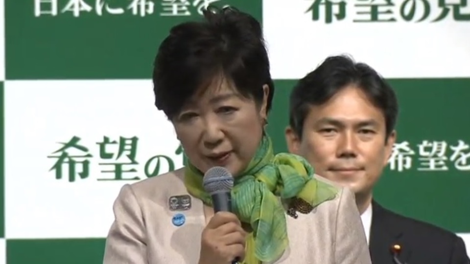 นางยูริโกะ โคอิเกะ ผู้ว่าการกรุงโตเกียวและอดีตผู้ประกาศข่าวทางโทรทัศน์วัย 65 ปี ใช้เครื่องขยายเสียงพูดกับผู้สัญจรพลุกพล่านที่สถานีรถไฟแห่งหนึ่งในกรุงโตเกียว เรียกร้องให้ช่วยกันยุติการเมืองแบบอาเบะ เพราะสภาพการเมืองปัจจุบันยังคงดำเนินไปทั้งที่ประชาชนหมดความไว้วางใจแล้ว พรรคแห่งความหวังที่นางโคอิเกะเพิ่งเปิดตัวเมื่อวันที่ 25 กันยายนกลายเป็นพรรคฝ่ายค้านที่ได้รับความสนใจมากที่สุดในขณะนี้ แต่การที่เธอไม่ยอมลงชิงตำแหน่งนายกรัฐมนตรีเพราะต้องการทุ่มเทให้แก่การเตรียมเป็นเจ้าภาพโอลิมปิกโตเกียว 2020 ทำให้คะแนนนิยมของพรรคสะดุดพอสมควร โยมิอูริ หนังสือพิมพ์ยอดจำหน่ายสูงสุดของประเทศพบว่า ผู้มีสิทธิเลือกตั้งร้อยละ 32 จะลงคะแนนให้พรรคเสรีประชาธิปไตย (แอลดีพี) ของนายกรัฐมนตรีชินโซ อาเบะ และร้อยละ 13 จะลงคะแนนให้พรรคแห่งความหวัง ลดลงถึงร้อยละ 6 จากเมื่อครั้งที่พรรคเพิ่งเปิดตัว