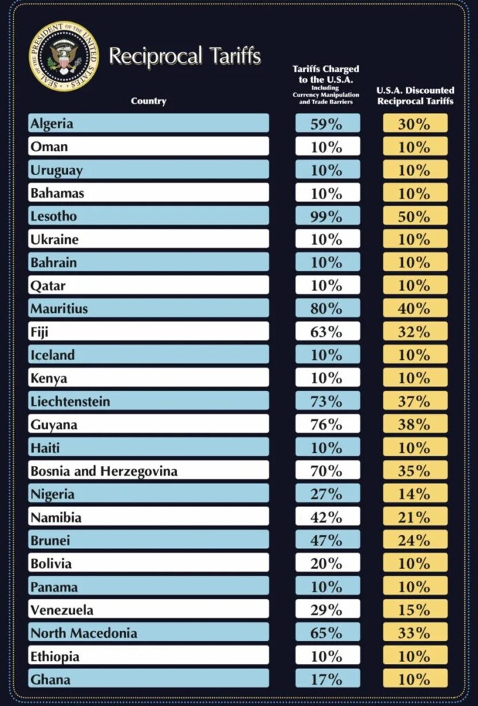 - Here is the full list of countries affected by Trump’s reciprocal tariffs