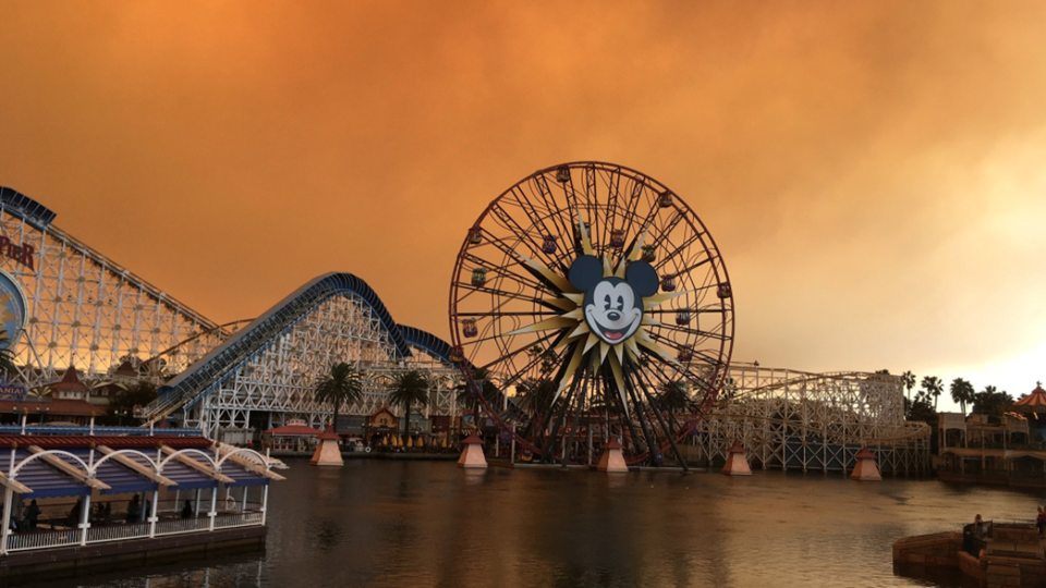 ชาวอเมริกันครอบครัวหนึ่งเผยว่า เดินไปที่ท่าน้ำแล้วต้องตกใจเมื่อเห็นฉากหลังของชิงช้าสวรรค์ สัญลักษณ์ของดิสนีย์แลนด์ กลายเป็นท้องฟ้าสีส้มทั้งที่ยังเป็นช่วงเวลากลางวัน เป็นความรู้สึกแปลกที่สุดครั้งหนึ่งเท่าที่เคยเจอมา พระอาทิตย์ดูเหมือนกำลังลุกเป็นไฟ และดิสนีย์แลนด์ดูไม่ใช่ดินแดนในฝันเหมือนที่เคย ระหว่างนั้นสังเกตเห็นละอองเถ้าที่ไหล่ เมื่อเพ่งดูก็เห็นละอองเถ้าตกอยู่รอบตัว นักท่องเที่ยวอีกคนโพสต์ภาพปราสาทดิสนีย์แลนด์ตระหง่านอยู่กลางท้องฟ้าสีส้มเข้ม และข้อความว่าไม่ต้องใช้ฟิลเตอร์ถ่ายภาพ