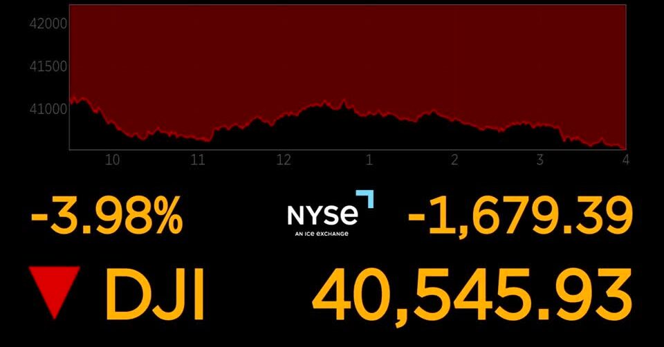 ตลาดหุ้น วอลล์ สตรีท ของสหรัฐปิดการซื้อขายเมื่อวานนี้ด้วยการร่วงลงระเนระนาดครั้งใหญ่ที่สุดในวันเดียวในรอบหลายปี จากการที่ประธานาธิบดีทรัมป์ กำหนดมาตรการภาษีนำเข้าครั้งใหญ่ ซึ่งก่อให้เกิดความหวาดกลัวว่าจะเกิดสงครามการค้าเต็มรูปแบบและภาวะเศรษฐกิจถดถอยทั่วโลก