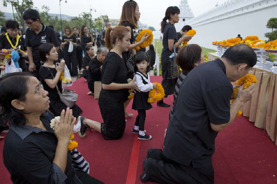 กรุงเทพฯ 13 ต.ค.- สำนักข่าวเอพีรายงานวันนี้ว่า ประชาชนในไทยเข้าร่วมงานที่จัดขึ้นตามสถานที่ต่างๆในวันนี้ เพื่อรำลึกครบรอบ 1 ปีการสวรรคตพระบาทสมเด็จพระปรมินทรมหาภูมิพลอดุลยเดช บรมนาถบพิตร โดยมีพิธีรำลึก ทำบุญตักบาตรพระสงฆ์ กิจกรรมของทางการและหน่วยงานต่างๆ