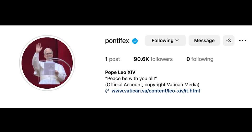 สมเด็จพระสันตะปาปาเลโอที่ 14 ทรงโพสต์ข้อความลงบนสื่อโซเชียลครั้งแรกเมื่อวานนี้ หลังจากทรงได้รับเลือกให้เป็นสมเด็จพระสันตะปาปาพระองค์ใหม่เมื่อวันที่ 8 พฤษภาคมที่ผ่านมา เนื้อหาที่โพสต์มาจากพระดำรัสของพระองค์ที่ทรงปราศรัยต่อสาธารณชนครั้งแรก และมีรูปถ่ายบางส่วนซึ่งเป็นภาพในวันแรกที่ทรงเข้ารับตำแหน่งของพระองค์