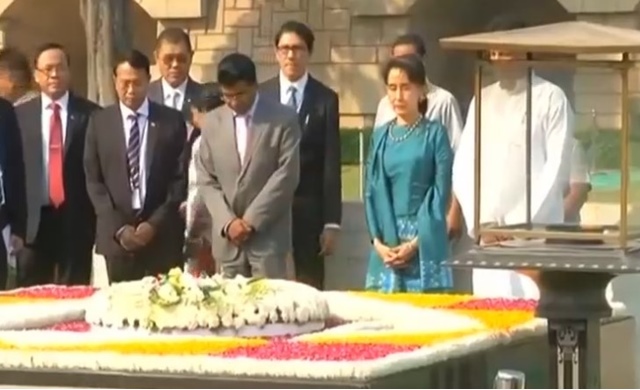 นอกจากกำหนดการที่จะพบกับบรรดาผู้นำในภาคส่วนต่างๆ นางซู จียังได้เดินทางไปยังอนุสรณ์สถานมหาตมะ คานธี ซึ่งตั้งอยู่บริเวณริมฝั่งแม่น้ำยมุนาในกรุงนิวเดลี เพื่อแสดงความคารวะแด่มหาบุรุษของอินเดีย โดยอนุสรณ์สถานดังกล่าวเป็นสถานที่เผาศพของมหาตมะ คานธี หลังจากที่ถูกลอบสังหารเมื่อเดือนมกราคม 2491.-สำนักข่าวไทย