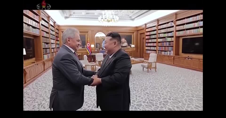 โซล 5 มิ.ย. – สถานีโทรทัศน์เคอาร์ที ของทางการเกาหลีเหนือ ในวันนี้เผยแพร่ภาพของนายคิม จองอึน ผู้นำสูงสุดของเกาหลีเหนือ พบกับนายเซอร์เก ชอยกู เลขาธิการสภาความมั่นคงของรัสเซีย ที่กรุงเปียงยางของเกาหลีเหนือ ในวันพุธ