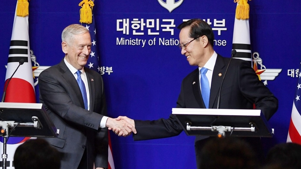 พล.อ.แมตทิสซึ่งไปเจรจากลาโหมประจำปีกับเกาหลีใต้แถลงข่าวร่วมกับ พล.ร.อ.ซง ยังมู รัฐมนตรีกลาโหมเกาหลีใต้ในวันนี้ว่า สหรัฐยังคงเลือกใช้วิถีทางทางการทูตอยู่ แต่นักการทูตของสหรัฐมักมีประสิทธิภาพมากที่สุดเมื่อได้รับการสนับสนุนจากกองทัพที่ไว้วางใจได้ ขอเตือนเกาหลีเหนือว่าอย่าทำผิดพลาด การโจมตีสหรัฐหรือพันธมิตรของสหรัฐจะต้องพ่ายแพ้ การใช้อาวุธนิวเคลียร์จะต้องถูกตอบโต้ทางทหารขนานใหญ่ที่เปี่ยมประสิทธิภาพและยากจะต้านทาน รัฐบาลสหรัฐไม่เคยยอมรับว่าเกาหลีเหนือเป็นมหาอำนาจนิวเคลียร์