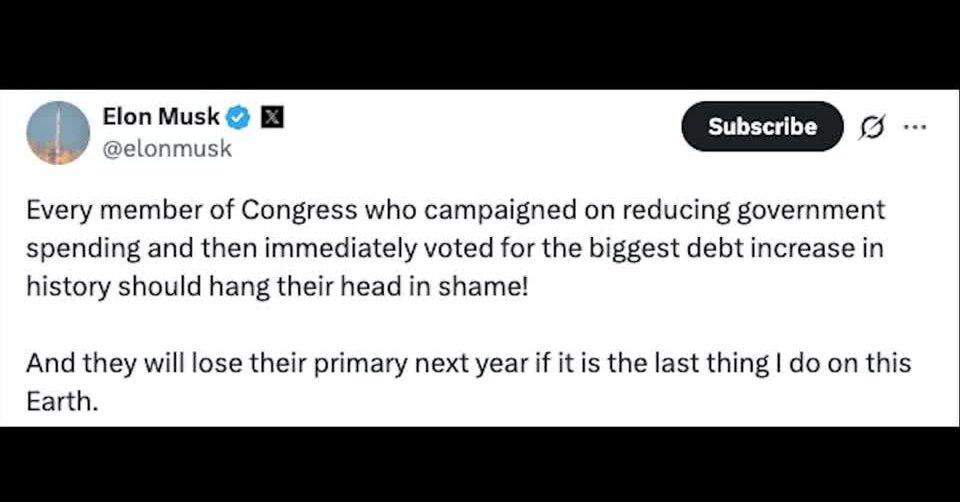 วอชิงตัน 1 ก.ค. – อีลอน มัสก์ มหาเศรษฐีผู้ก่อตั้งเทสลาและสเปซเอ็กซ์ กลับมาวิพากษ์วิจารณ์ประธานาธิบดีโดนัลด์ ทรัมป์ ของสหรัฐ อีกครั้งเกี่ยวกับนโยบายลดภาษีและร่างกฎหมายการใช้จ่ายของรัฐบาล โดยเขาประกาศว่าจะโค่นล้มนักการเมืองที่สนับสนุนนโยบายดังกล่าวให้พ้นจากตำแหน่ง หลังจากที่ตัวเขาเองเคยรณรงค์จำกัดการใช้จ่ายของรัฐบาล