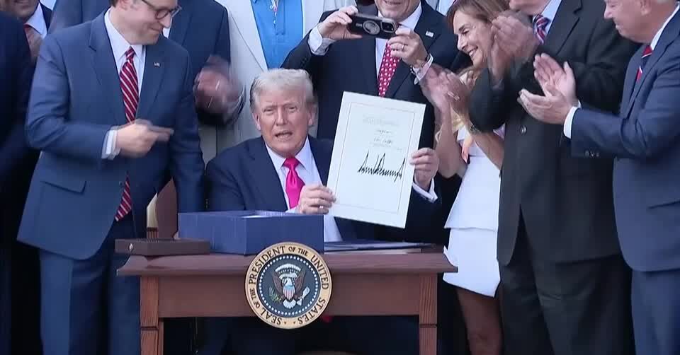 ก่อนหน้านั้น นายทรัมป์ลงนามบังคับใช้ แพ็กเกจกฎหมายขนาดใหญ่ว่าด้วยการลดภาษีและการใช้จ่าย ในพิธีที่จัดขึ้นที่ทำเนียบขาว เพียงหนึ่งวันหลังจากที่สภาผู้แทนราษฎร ซึ่งพรรครีพับลิกันครองเสียงข้างมาก ได้อนุมัติร่างกฎหมายสำคัญนี้ไปอย่างฉิวเฉียด ซึ่งถือเป็นกฎหมายสำคัญประจำวาระที่สองของรัฐบาลทรัมป์