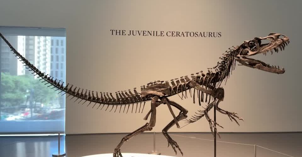 สถาบันประมูลซอธบีส์ จัดประมูลฟอสซิลโครงกระดูกไดโนเสาร์ ‘เซอราโตซอรัส’ (Ceratosaurus) ซึ่งยังอยู่ในวัยเด็ก ที่นครนิวยอร์กเมื่อวันพุธ และปิดประมูลไปที่ราคา 30.5 ล้านดอลลาร์ (ประมาณ 990 ล้านบาท) สูงกว่าราคาประเมินต่ำสุดถึง 7 เท่า ถือเป็นโครงกระดูกไดโนเสาร์แพงเป็นอันดับ 3 ที่เคยถูกประมูลมา