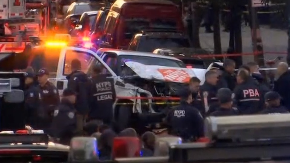 เจ้าหน้าที่พบโน้ตดังกล่าวในรถกระบะที่คนร้ายเช่ามาใช้ก่อเหตุพุ่งชนคนบนทางจักรยานช่วงเวลา 15.00 น.วานนี้ตามเวลาท้องถิ่นใกล้เวิลด์เทรดเซ็นเตอร์ ทางการแถลงว่า มีผู้เสียชีวิตในที่เกิดเหตุ 6 คน เสียชีวิตที่โรงพยาบาล 2 คน รวมเป็น 8 คนแล้ว และมีผู้บาดเจ็บอาการหนักแต่ไม่ร้ายแรงถึงชีวิต ถูกนำตัวส่งโรงพยาบาล 11 คน