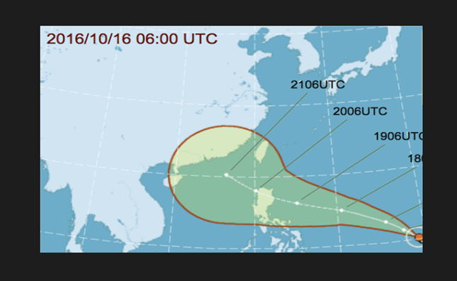 สำนักอุตุนิยมวิทยาไต้หวัน แจ้งว่า เมื่อเวลา 14.00 น. วันอาทิตย์ ตามเวลาท้องถิ่น ไต้ฝุ่นไหหม่าอยู่ห่างจากทางใต้สุดของไต้หวันไปทางใต้ค่อนตะวันออกเฉียงใต้ 2,370 กิโลเมตร เคลื่อนตัวขึ้นไปทางตะวันตกเฉียงเหนือด้วยความเร็ว 17 กิโลเมตร/ชั่วโมง มีความเร็วลมสูงสุดใกล้ศูนย์กลางที่ 119 กิโลเมตร/ชั่วโมง ความเร็วลมกระโชกสูงสุดที่ 155 กิโลเมตร/ชั่วโมง และมีรัศมีแผ่กว้างถึง 150 กิโลเมตร คาดว่าไต้ฝุ่นจะเคลื่อนตัวใกล้ไต้หวันที่สุด ระหว่างวันที่ 20-21 ตุลาคมนี้ ขณะเคลื่อนตัวผ่านช่องแคบบาซี และทางสำนักอุตุนิยมวิทยาอาจแจ้งเตือนทางทะเล เมื่อไต้ฝุ่นเคลื่อนตัวมาใกล้ เพราะมีกำลังแรงขึ้นอย่างต่อเนื่อง.-สำนักข่าวไทย