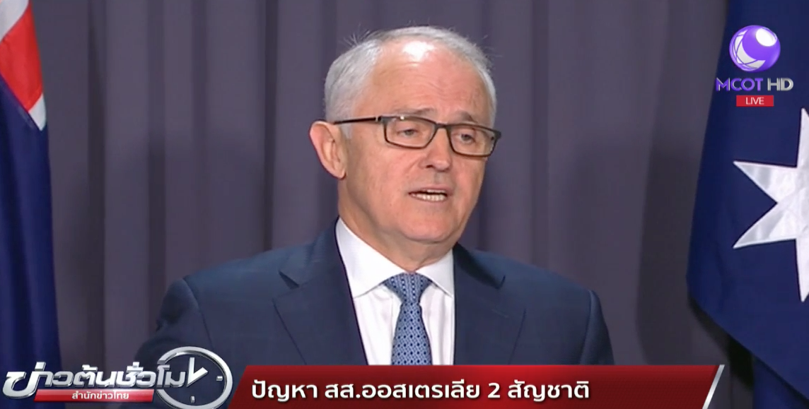 ออสเตรเลีย 6 พ.ย.- นายกรัฐมนตรีมัลคอล์ม เทิร์นบุลล์ ของออสเตรเลีย เตรียมออกมาตรการบังคับให้สมาชิกสภานิติบัญญัติทุกคนต้องแสดงเอกสารยืนยันชัดเจนว่าไม่ได้เป็นบุคคล 2 สัญชาติ หลังจากสมาชิกสภานิติบัญญัติ 5 คน ที่มีรองนายกรัฐมนตรีบาร์นาบี จอยซ์ รวมอยู่ด้วย ถูกศาลสูงตัดสินชี้ขาดให้พ้นจากตำแหน่ง เนื่องจากเป็นคน 2 สัญชาติ ทั้งนี้ รัฐธรรมนูญออสเตรเลียกำหนดไว้ชัดเจน ห้ามชาวต่างชาติดำรงตำแหน่งในรัฐสภา เพื่อความมั่นคงปลอดภัยของประเทศ.-สำนักข่าวไทย