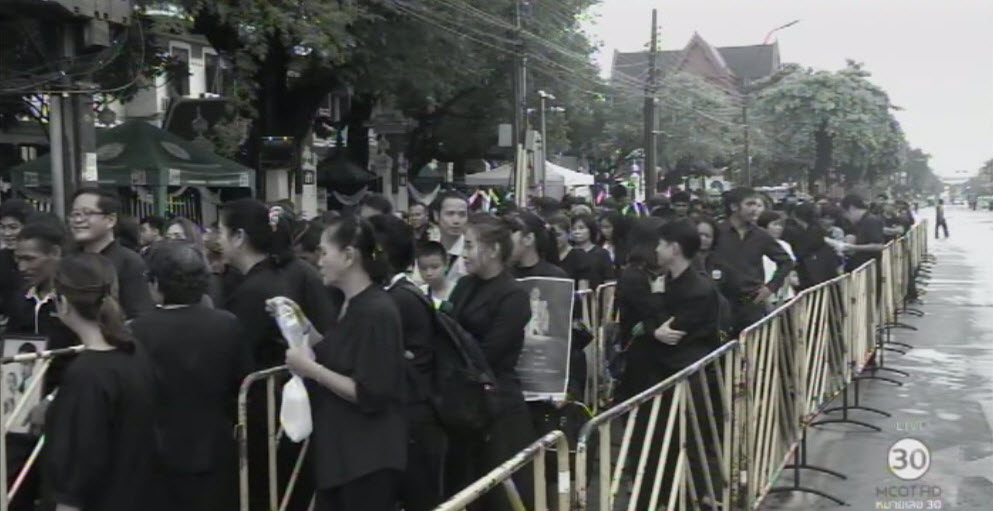 17 ต.ค. – สำนักข่าวรอยเตอร์ ลงข่าวพสกนิกรหลั่งไหลเดินทางมาแสดงความอาลัยแด่พระบาทสมเด็จพระปรมินทรมหาภูมิพลอดุลยเดช โดยรายงานว่า แม้สภาพอากาศร้อนจัด ทั้งยังมีสายฝนโหมกระหน่ำอย่างหนัก พสกนิกรชาวไทยก็ไม่ย่อท้อ เดินทางมาแสดงความอาลัยตั้งแต่ช่วงค่ำคืน