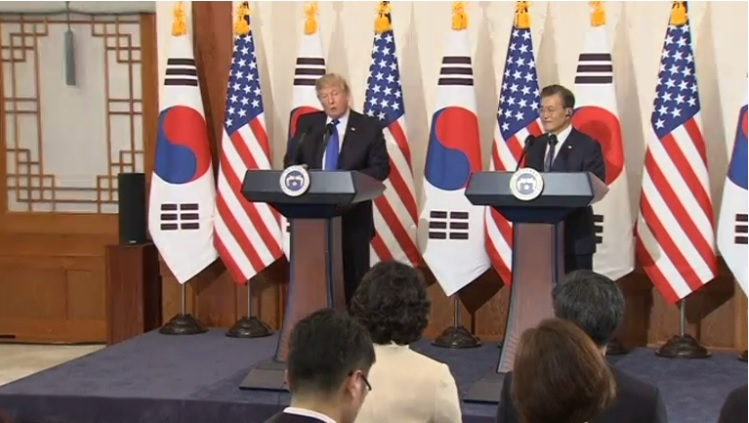 ประธานาธิบดีสหรัฐ ซึ่งยืนแถลงข่าวเคียงข้างกับประธานาธิบดีมุน แจ-อิน ของเกาหลีใต้ ย้ำอีกครั้งว่า เขาเตรียมการทีจะใช้พละกำลังทางทหารทั้งหมดที่สหรัฐมีอยู่เพื่อหยุดยั้งเกาหลีเหนือมิให้เป็นประเทศที่มีอาวุธนิวเคลียร์ไว้ในครอบครองอย่างเต็มรูปแบบ อย่างไรก็ตาม เขาก็กล่าวเสริมว่า เป็นเรื่องที่ดีและเหมาะสมถ้าหากเกาหลีเหนือจะยอมมานั่งโต๊ะเจรจากัน ซึ่งถือเป็นเรื่องดีสำหรับชาวเกาหลีเหนือและประชากรโลก นายทรัมป์ ซึ่งอยู่ในระหว่างการเยือนเกาหลีใต้ กล่าวว่า เกาหลีเหนือเป็นภัยคุกคามของโลกและทั่วโลกต้องร่วมมือกันในการแก้ไขปัญหา โดยเขาเชื่อว่า ขณะนี้การแก้ปัญหาเกาหลีเหนือมีความคืบหน้าไปมาก และประธานาธิบดีสี จิ้นผิง ของจีน ซึ่งนายทรัมป์มักจะกล่าวหลายครั้งว่าเป็นกุญแจสำคัญในการปลดอาวุธเกาหลีเหนือ ก็มีส่วนช่วยเหลืออย่างมากในการแก้ปัญหาเกาหลีเหนือ.-สำนักข่าวไทย