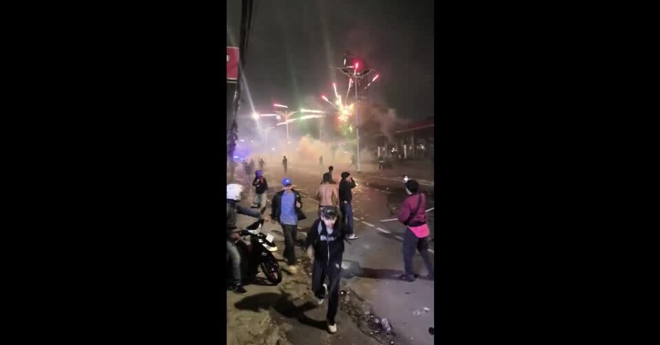 คลิปวิดีโอที่เผยแพร่ในสื่อสังคมออนไลน์แสดงให้เห็นว่าตำรวจใช้แก๊สน้ำตายิงใส่กลุ่มผู้ประท้วงที่ใช้พลุไฟตอบโต้ และมีรถตำรวจบางคันถูกเผาทำลายด้วย