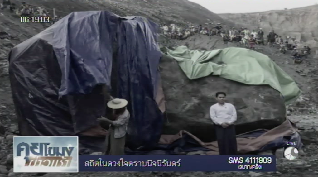 เมียนมาร์ 17 ต.ค.- คนงานเหมืองหยกรัฐคะฉิ่นในเมียนมาร์ตะลึง พบหยกขนาดยักษ์ ก้อนใหญ่สุดเท่าที่เคยพบมาในประเทศ น้ำหนัก 175 ตัน มูลค่ามหาศาล 6,000 ล้านบาท