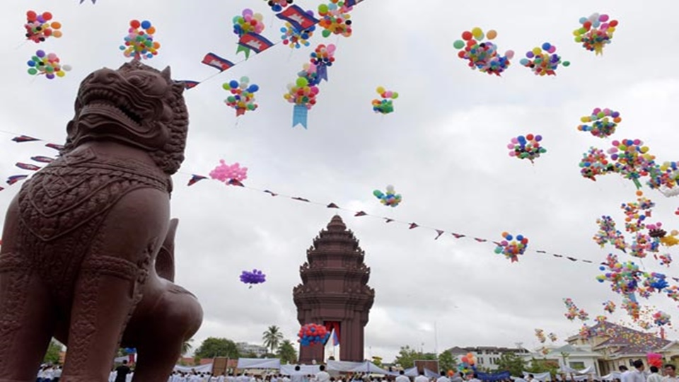 พนมเปญ 9 พ.ย. – ชาวกัมพูชาฉลองครบรอบ 64 ปีการประกาศเอกราชจากฝรั่งเศส โดยมีพิธีจัดขึ้นที่อนุสาวรีย์เอกราชในกรุงพนมเปญในวันนี้
