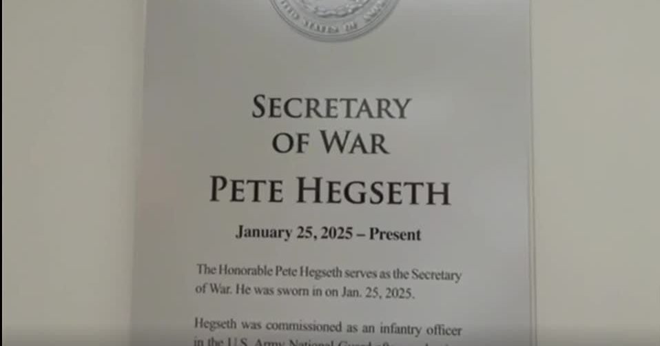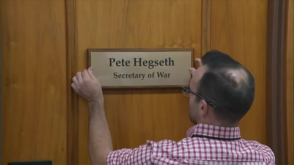 ทางกระทรวงได้ดำเนินการอย่างรวดเร็วเพื่อเปลี่ยนป้ายต่างๆ ที่สำนักงานใหญ่ที่เป็นอาคารห้าเหลี่ยมในเมืองอาร์ลิงตัน รัฐเวอร์จิเนีย โดยเปลี่ยนตำแหน่งของรัฐมนตรีกระทรวงกลาโหม นายพีท เฮกเซธ เป็น “รัฐมนตรีว่าการกระทรวงสงคราม” (Secretary of War) และรัฐมนตรีช่วยว่าการ สตีฟ ไฟน์เบิร์ก เป็น “รัฐมนตรีช่วยว่าการกระทรวงสงคราม”