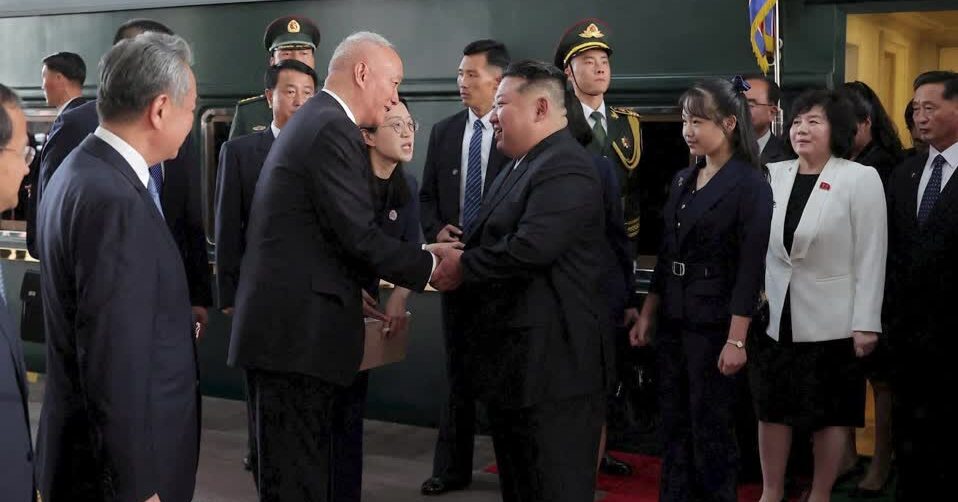 เมื่อต้นเดือนที่ผ่านมา นายคิมได้เดินทางไปกรุงปักกิ่งอย่างไม่เคยมีมาก่อนเพื่อเข้าร่วมกิจกรรมขนาดใหญ่ โดยได้ยืนเคียงข้างกับประธานาธิบดี สี จิ้นผิง ของจีน และประธานาธิบดีวลาดิเมียร์ ปูติน ของรัสเซีย ในพิธีสวนสนามทางทหารครั้งใหญ่ของจีน