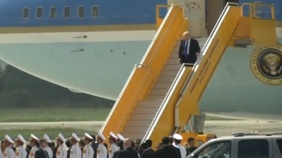 ดานัง 10 พ.ย.- ประธานาธิบดีโดนัลด์ ทรัมป์ของสหรัฐเดินทางถึงเวียดนามในวันนี้เพื่อเข้าร่วมการประชุมสุดยอดกลุ่มความร่วมมือทางเศรษฐกิจในภูมิภาคเอเชีย-แปซิฟิก(เอเปก) ทำเนียบขาวแถลงว่า ผู้นำสหรัฐจะแถลงวิสัยทัศน์ว่าด้วยเสรีภาพและเปิดกว้างในอินโด-แปซิฟิก ซึ่งคาดว่ามุ่งเน้นประเด็นความมั่นคงและการค้า