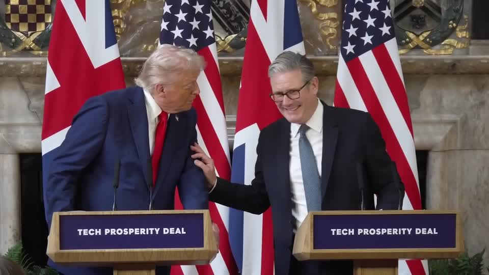 ก่อนหน้านั้น ทรัมป์และสตาร์เมอร์ได้ยกย่องความสัมพันธ์พิเศษระหว่างสองประเทศในการแถลงข่าวร่วมที่เป็นกันเอง โดยพยายามหลีกเลี่ยงการพูดถึงความเห็นต่างในประเด็นฉนวนกาซาและพลังงานลม เพื่อเน้นย้ำจุดร่วมกัน ทรัมป์กล่าวว่า การยุติสงครามในยูเครนนั้นมีความซับซ้อนมากกว่าที่เขาคาดไว้ และเขารู้สึกว่า ประธานาธิบดี วลาดิเมียร์ ปูติน ผู้นำรัสเซียทำให้เขาผิดหวัง ทรัมป์แสดงความไม่พอใจที่หลายประเทศยังคงซื้อพลังงานจากรัสเซีย เพราะวิธีเดียวที่จะลงโทษรัสเซียอย่างได้ผล คือการทำให้ราคาน้ำมันลดลง ทรัมป์ยังบอกด้วยว่า อังกฤษสามารถใช้ทหารและกองทัพสกัดกั้นบรรดาผู้อพยพเข้าเมืองผิดกฎหมาย ที่ใช้วิธีโดยสารเรือลำเล็กเดินทางจากฝรั่งเศสผ่านช่องแคบอังกฤษเข้ามายังอังกฤษ