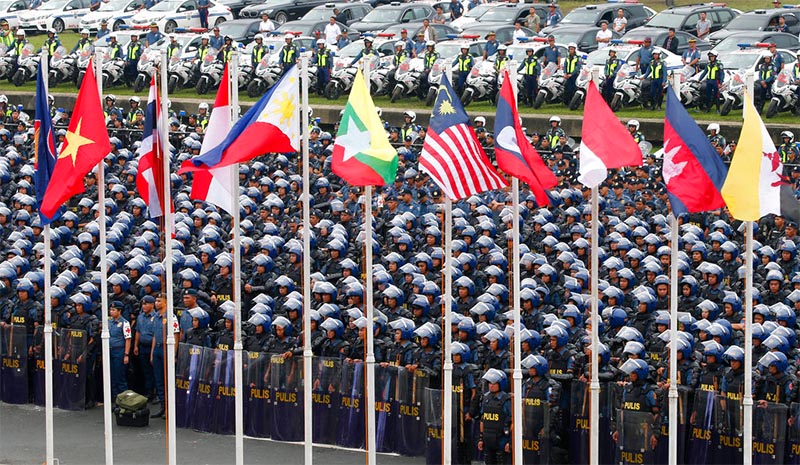 กลุ่มผู้ประท้วงชูแผ่นป้ายและร้องตะโกนข้อความที่มีเนื้อหาไม่ต้อนรับประธานาธิบดีทรัมป์ และห้ามนายทรัมป์เข้าฟิลิปปินส์ โดยมีนักศึกษาและคนหนุ่มสาวนำขบวนต่อต้านนายทรัมป์ ก่อนหน้านี้สหรัฐและฟิลิปปินส์ได้ลงนามในความตกลงเมื่อสามปีก่อนยินยอมการขยายฐานประจำการของกองกำลังสหรัฐในฟิลิปปินส์ ข้อตกลงความร่วมมือด้านกลาโหมดังกล่าวอนุญาตให้กองทหารสหรัฐเข้าถึงพื้นที่ทหารบางส่วนได้ รวมทั้งให้ประจำการเครื่องบินรบและเรือในฟิลิปปินส์ ทางด้านประธานาธิบดีทรัมป์มีกำหนดเดินทางถึงกรุงมะนิลาของฟิลิปปินส์ในวันอาทิตย์เพื่อเข้าร่วมงานเลี้ยงอาหารค่ำในโอกาสครบรอบ 50 ปีของสมาคมประชาชาติเอเชียตะวันออกเฉียงใต้(อาเซียน) .-สำนักข่าวไทย
