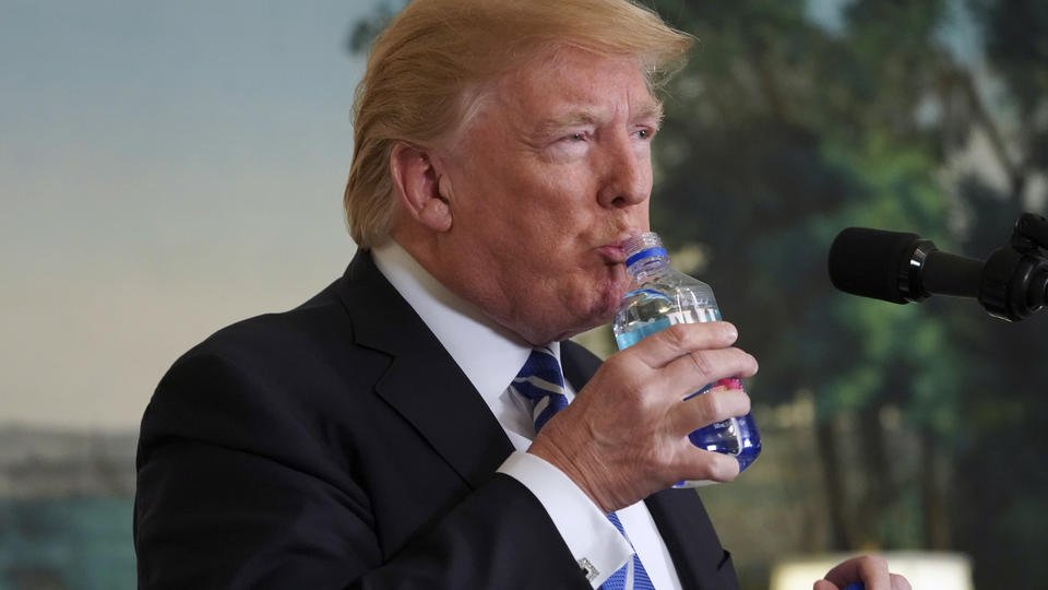 ประธานาธิบดีทรัมป์ขอพักชั่วคราวเพื่อดื่มน้ำระหว่างแถลงผลงานรายละเอียดภารกิจเยือนเอเชีย 5 ประเทศ หลังจากเขาพยายามหาน้ำดื่มที่แท่นปราศรัย ทำให้ทีมงานซึ่งอยู่ภายในห้องต้องช่วยกันหยิบขวดน้ำดื่มที่โต๊ะใกล้เคียงมาให้ จากนั้นผู้นำสหรัฐขอพักดื่มน้ำอีกรอบในอีกไม่กี่นาทีถัดมา ก่อนหน้านี้ในการหาเสียงเลือกตั้งประธานาธิบดีสหรัฐ 2559 นายทรัมป์เคยกล่าวล้อเลียนนายมาร์โก รูบิโอ สว.รัฐฟลอริดา คู่แข่งในพรรคเดียวกันที่ขอพักดื่มน้ำบ่อยๆ ทางด้านนายรูบิโอทวีตข้อความล้อว่านายทรัมป์พยายามเลียนแบบเขาเรื่องดื่มน้ำเยอะ .-สำนักข่าวไทย