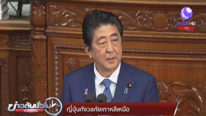 นายชินโซ อาเบะ นายกรัฐมนตรีญี่ปุ่น แถลงนโยบายต่อรัฐสภาระบุว่า ภัยคุกคามจากเกาหลีเหนือเป็นปัญหาความมั่นคงร้ายแรงที่สุดที่ญี่ปุ่นเคยเผชิญ นับตั้งแต่สงครามโลกครั้งที่ 2 การทดลองนิวเคลียร์ครั้งที่ 6 และขีปนาวุธของเกาหลีเหนือ ที่ผ่านน่านฟ้าญี่ปุ่นถือเป็นวิกฤติแห่งชาติ ญี่ปุ่นจะหามาตรการที่เป็นรูปธรรมภายใต้ความร่วมมือกับสหรัฐเพื่อตอบโต้ รวมทั้งเสริมขีดความสามารถในการป้องกัน โดยมีแผนจะซื้อระบบป้องกันขีปนาวุธจากสหรัฐเพิ่ม.-สำนักข่าวไทย