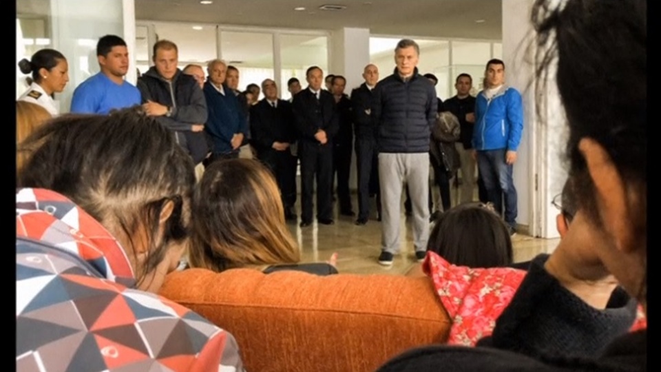 ครอบครัวร่วมร้อยชีวิตรอฟังข่าวที่ฐานทัพเรือมาร์เดลปลาตา ห่างจากกรุงบัวโนสไอเรสไปทางใต้ 400 กิโลเมตร ต่างปลอบโยนกันและหวังว่าจะมีข่าวดี ประธานาธิบดีเมารีซีโอ มากรีเดินทางไปพบและให้กำลังใจพวกเขา นักบำบัดเผยว่า จนถึงขณะนี้สภาพจิตใจครอบครัวยังดีอยู่แต่ก็เริ่มมีความกังวลมากขึ้น ขณะที่บริเวณรั้วของฐานทัพมีผู้เขียนป้ายและข้อความให้กำลังใจติดไว้ ส่วนสื่อไม่ได้รับอนุญาตให้เข้าไปข้างใน ลูกเรือส่วนใหญ่จากทั้งหมด 44 คน เป็นชาวเมืองมาร์เดลปลาตา แต่ก็มีคนหนึ่งที่มาจากเมืองทางเหนือและเป็นลูกเรือดำน้ำหญิงคนแรกของทวีปอเมริกาใต้