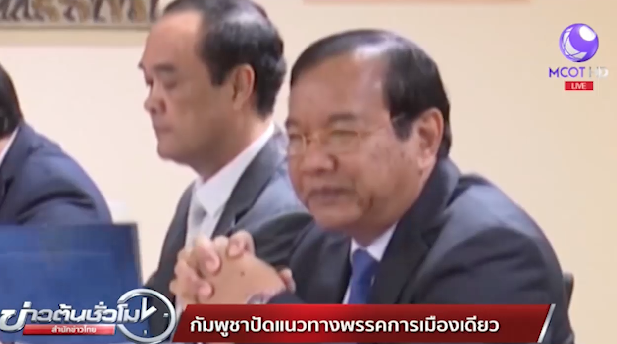 กัมพูชา 30 พ.ย.- รัฐมนตรีต่างประเทศกัมพูชาปฏิเสธข้อกล่าวหาว่า กัมพูชากำลังเดินหน้าผลักดันให้เป็นประเทศที่มีพรรคการเมืองเดียว ระบุปัจจุบันมีพรรคการเมืองทั้งหมด 35 พรรค และการที่รัฐบาลใช้กฎหมายเพื่อยุบพรรคฝ่ายค้าน ก็เพื่อให้เกิดสันติภาพและความมั่นคงทางการเมืองในประเทศ สำหรับข้อกล่าวหาดังกล่าวมีขึ้นหลังศาลสูงกัมพูชาพิพากษายุบพรรคฝ่ายค้านซีเอ็นอาร์พี เมื่อต้นเตือนที่ผ่านมา.-สำนักข่าวไทย