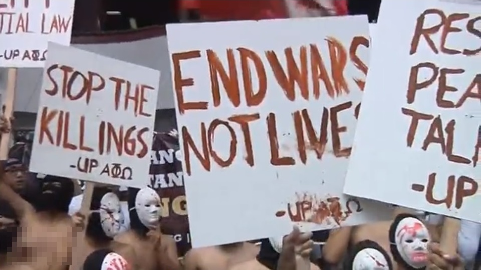 มะนิลา 1 ธ.ค.- สมาคมนักศึกษาชายในฟิลิปปินส์พากันเปลือยกายวิ่งประจำปีในมหาวิทยาลัยแห่งหนึ่งของกรุงมะนิลา ประท้วงประธานาธิบดีโรดริโก ดูเตอร์เตเรื่องทำสงครามปราบปรามยาเสพติดและการประกาศกฎอัยการศึก