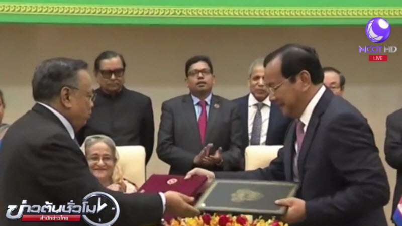 กัมพูชา 5 ธ.ค. – กัมพูชาและบังกลาเทศลงนามบันทึกความเข้าใจด้านเศรษฐกิจและการลงทุนระหว่างกัน รวม 11 ฉบับ นายปาน สรศักดิ์ รัฐมนตรีพาณิชย์กัมพูชา เผยว่า การลงนามเอ็มโอยูระหว่างหอการค้าของทั้ง 2 ประเทศ มีนัยสำคัญต่อการเพิ่มความร่วมมือระหว่างกัน และกระชับความสัมพันธ์ให้ใกล้ชิดกันมากขึ้น เวลานี้กัมพูชากำลังพิจารณานำเข้าสินค้าหลายรายการจากบังกลาเทศ ไม่ว่าจะเป็นกระสอบป่าน เครื่องกระเบื้อง เครื่องหนัง และเวชภัณฑ์ ขณะที่บังกลาเทศก็ต้องการสั่งซื้อสินค้าเกษตรหลายอย่างจากกัมพูชาเช่นกัน นายสรศักดิ์ กล่าวคาดว่า มูลค่าการค้าการลงทุนระหว่างกันจะขยายตัวเพิ่มถึง 2 เท่า ภายในเวลา 5 ปี จากที่ปัจจุบันมูลค่าการค้าระหว่างกันยังต่ำกว่าปีละ 10 ล้านดอลลาร์สหรัฐ หรือราว 320 ล้านบาท. – สำนักข่าวไทย