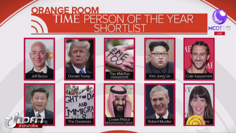 สหรัฐ 5 ธ.ค. – นิตยสารไทม์ เปิดเผย 10 รายชื่อผู้เข้ารอบสุดท้ายที่จะได้รับเลือกเป็นบุคคลแห่งปี 2017