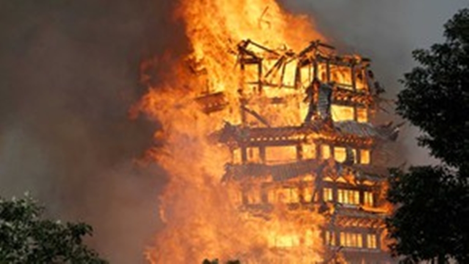 เสฉวน 11 ธ.ค.- เกิดไฟไหม้เจดีย์โบราณสมัยคริสต์ศตวรรษที่ 16 ในมณฑลเสฉวน ทางตะวันตกเฉียงใต้ของจีนจนเหลือแต่ซาก เหตุเกิดระหว่างการซ่อมแซมเจดีย์ที่เสียหายหนักจากแผ่นดินไหวใหญ่ปี 2551
