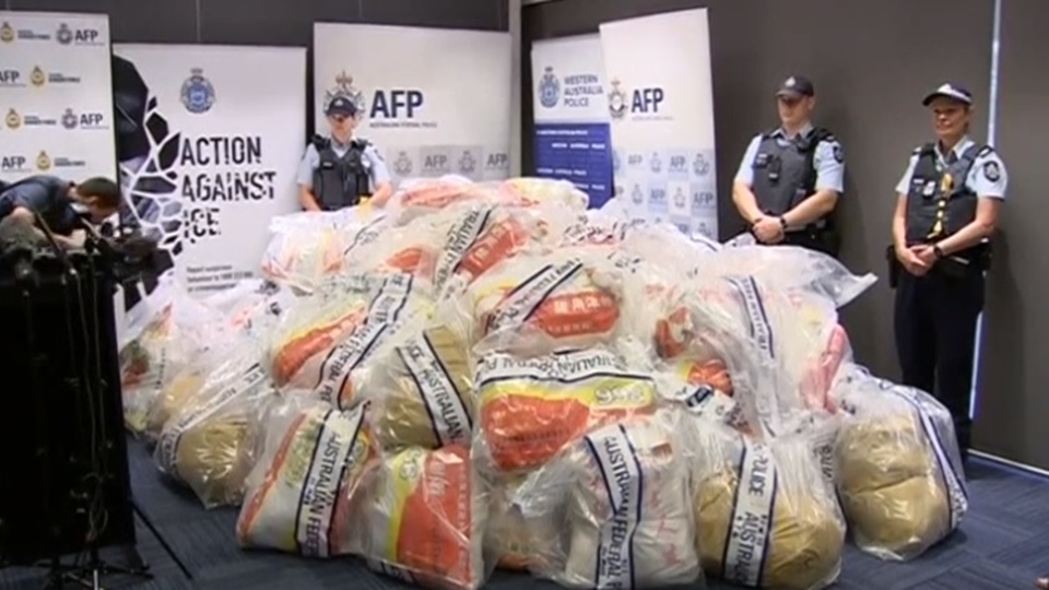 เจ้าหน้าที่ออสเตรเลียกล่าวว่า ยึดยาไอซ์น้ำหนักรวม 1.2 ตันจากเรือลำหนึ่ง ซึ่งเจ้าหน้าที่คาดว่าเดินทางมาจากจีน ออสเตรเลียมีสถิติผู้เสพยาไอซ์ต่อคนสูงที่สุดในโลก และกลายเป็นเป้าหมายของผู้ลักลอบค้ายาเสพติดเพราะราคาในตลาดทะยานขึ้น ขณะที่ยาไอซ์ซึ่งทะลักเข้าออสเตรเลียมาจากจีนและบริเวณสามเหลี่ยมทองคำซึ่งเป็นพื้นที่เชื่อมต่อเมียนมา ไทย และลาว ชาย 8 คนซึ่งเป็นชาวออสเตรเลียทั้งหมดถูกตั้งข้อหานำเข้าหรือครอบครองยาเสพติดเพื่อการค้าที่มีโทษจำคุกตลอดชีวิต ออสเตรเลียระบุว่าจีนและอินเดียเป็นแหล่งสำคัญในการผลิตสารตั้งต้นเพื่อใช้ผลิตยาไอซ์ โดยมีจีนและเมียนมาเป็นแหล่งผลิตในกระบวนการขั้นสุดท้าย .- สำนักข่าวไทย