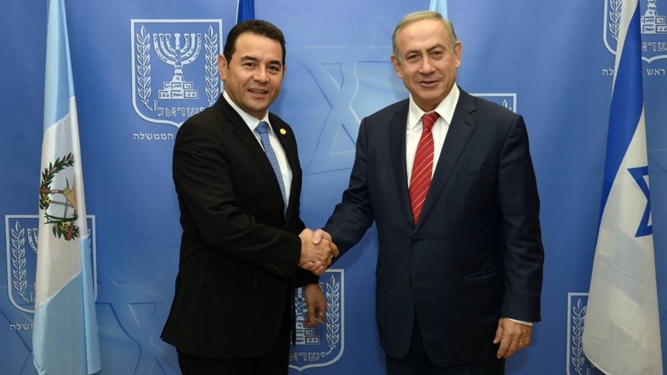 กัวเตมาลาซิตี 25 ธ.ค.- ประธานาธิบดีจิมมี มอราเลสของกัวเตมาลาเผยว่า ได้สั่งการให้ย้ายสถานทูตในอิสราเอลจากกรุงเทลอาวีฟไปนครเยรูซาเล็มแล้ว หลังจากพบกับนายกรัฐมนตรีเบนยามิน เนทันยาฮูของอิสราเอลและสนับสนุนท่าทีสหรัฐที่ประกาศรับรองสถานภาพเยรูซาเล็มเป็นเมืองหลวงอิสราเอล