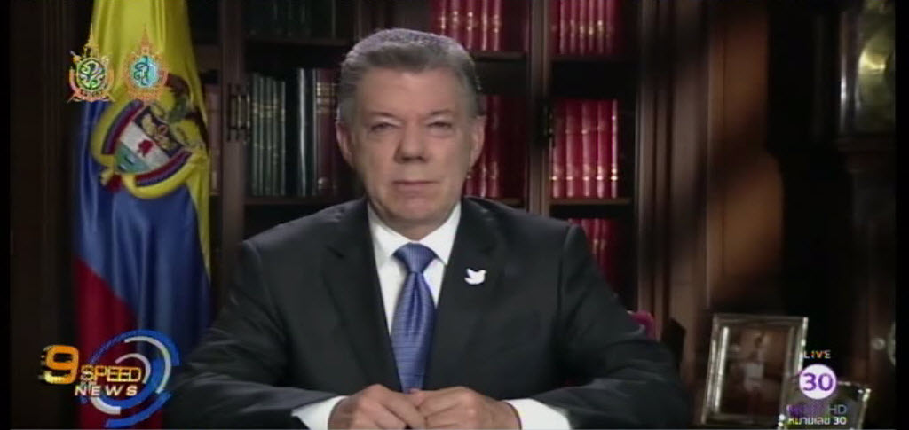 รัฐบาลโคลอมเบียภายใต้การนำของประธานาธิบดีฮวน มานูเอล ซานโตส และกองกำลังปลดปล่อยแห่งชาติ หรืออีแอลเอ็น กลุ่มกบฏอันดับ 2 ของโคลอมเบีย ตกลงกลับสู่การเจรจาสันติภาพในวันที่ 27 ตุลาคมนี้ ที่เอกวาดอร์ ซึ่งกลุ่มกบฏอีแอลเอ็นให้คำมั่นว่า ก่อนที่การเจรจาสันติภาพจะเริ่มขึ้น จะยอมปล่อยตัวประกัน 2 คน ที่ถูกจับมาแล้วหลายเดือน.-สำนักข่าวไทย