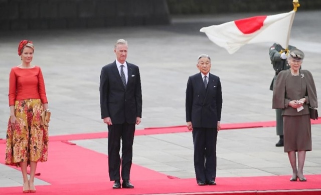สมเด็จพระจักรพรรดิอากิฮิโตะและสมเด็จพระจักรพรรดินีมิชิโกะเสด็จให้การต้อนรับสมเด็จพระราชาธิบดีและพระราชินีแห่งเบลเยียมในงานเลี้ยงรับรองกลางแจ้งที่พระราชวังอิมพีเรียล นอกจากนี้ทั้งสองพระองค์ทรงมีพระราชปฏิสันถารกับเจ้าชายนารูฮิโตะและเจ้าหญิงมาซาโกะด้วย สมเด็จพระราชาธิบดีฟีลิปและสมเด็จพระราชินีมาตีลด์ทรงมีกำหนดการเยือนญี่ปุ่นในวันจันทร์จนถึงวันเสาร์นี้ สมเด็จพระราชาธิบดีแห่งเบลเยียมทรงมีพระบรมราชานุญาตให้ผู้นำภาคธุรกิจญี่ปุ่นเข้าเฝ้าในวันนี้ รวมถึงกำหนดพบกับนายกรัฐมนตรีชินโซ อาเบะระหว่างประทับอยู่ในญี่ปุ่น สมเด็จพระราชาธิบดีฟีลิปแห่งเบลเยียมพระชนมายุ 56 พรรษา เสด็จขึ้นครองราชย์เมื่อปี 2556 ภายหลังจากสมเด็จพระราชาธิบดีอัลแบร์ที่ 2 พระราชบิดาทรงสละราชสมบัติ .- สำนักข่าวไทย