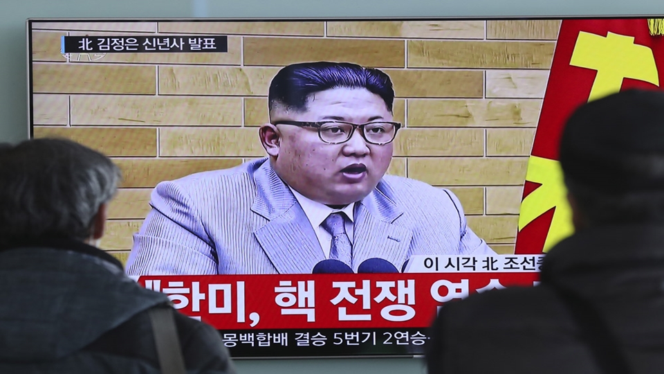 นายคิมกล่าวในวันขึ้นปีใหม่ที่มีการถ่ายทอดสดทางโทรทัศน์ในวันนี้ว่า เกาหลีเหนือต้องผลิตหัวรบนิวเคลียร์และขีปนาวุธนำวิถีจำนวนมาก รวมทั้งเร่งนำอาวุธเหล่านี้ไปติดตั้งประจำการ ขณะนี้เกาหลีเหนือสามารถรับมือกับภัยคุกคามนิวเคลียร์ของสหรัฐ มีการป้องกันด้วยนิวเคลียร์ที่แข็งแกร่งสามารถยับยั้งสหรัฐไม่ให้เล่นกับไฟได้ ปุ่มยิงนิวเคลียร์อยู่บนโต๊ะของเขาที่พร้อมยิงได้ทุกเมื่อ ไม่ใช่การกรรโชกแต่เป็นเรื่องจริง อย่างไรก็ดี เกาหลีเหนือจะใช้อาวุธเหล่านี้ต่อเมื่อความมั่นคงถูกคุกคามเท่านั้น