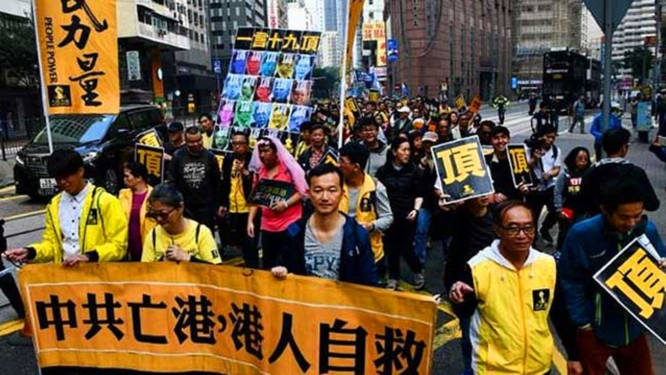 นายโจชัว หว่อง วัย 21 ปี ที่อยู่ระหว่างอุทธรณ์โทษจำคุก 6 เดือนในคดีเป็นแกนนำปักหลักประท้วงเมื่อปลายปี 2557 กล่าวระหว่างร่วมเดินขบวนในวันนี้ว่า หวังว่าปีนี้ชาวฮ่องกงทุกคนจะกลายเป็นผู้รู้จักตอบโต้เพื่อทวงคืนค่านิยมหลักของฮ่องกงที่ถูกรัฐบาลจีนทำลาย การประท้วงวันนี้มีสาเหตุจากการที่ทางการจีนและฮ่องกงทำข้อตกลงเรื่องการใช้สถานที่ร่วมกัน กำหนดให้สถานีรถไฟแห่งใหม่ในย่านเกาลูนของฮ่องกงที่เป็นสถานีปลายทางของเส้นทางรถไฟความเร็วสูงเชื่อมเขตเศรษฐกิจพิเศษเซินเจิ้นกับเมืองกวางโจว ต้องใช้กฎหมายจีนและมีตำรวจจีนมาประจำการร่วมด้วย เพราะจะเป็นที่ตั้งของด่านตรวจคนเข้าเมืองร่วม สภาประชาชนจีนอนุมัติเมื่อสัปดาห์ก่อน รอเพียงสภานิติบัญญัติฮ่องกงซึ่งมีแนวโน้มจะเห็นชอบตามจีน