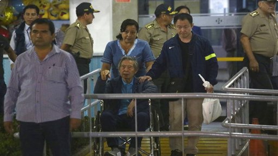 นายฟูจิโมริวัย 79ปีนั่งรถเข็นออกจากโรงพยาบาลในสภาพอิดโรยและโบกมือให้กับกลุ่มผู้สนับสนุนที่มารออยู่ ขณะที่ปรึกษาเข็นรถนำอดีตประธานาธิบดีฟูจิโมริออกจากทางเดินคลินิกเซนทีนาริโอและนำขึ้นขบวนรถเคลื่อนออกไป อดีตประธานาธิบดีฟูจิโมริได้รับอภัยโทษในไม่กี่วัน ภายหลังจากนายเคนจิ บุตรชายของเขาซึ่งดำรงตำแหน่งสมาชิกสภาเปรู งดออกเสียงในการลงมติถอดถอนประธานาธิบดีกักซินสกีออกจากตำแหน่งในข้อหาทุจริต ทำให้หลายฝ่ายมองกันว่าเป็นความตกลงเพื่อต่างตอบแทนกัน .- สำนักข่าวไทย