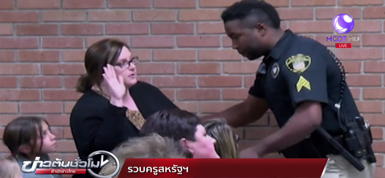 สหรัฐ 10 ม.ค. – เกิดเหตุวุ่นวายระหว่างการประชุมคณะกรรมการของโรงเรียนแห่งหนึ่งในรัฐลุยเซียนา ของสหรัฐ เมื่อเดย์เชีย ฮาร์เกรฟ ครูคนหนึ่ง ลุกขึ้นโต้เถียงกับคณะกรรมการเกี่ยวกับเงินเดือนครู และโต้เถียงรุนแรงจนถึงขั้นที่ประธานคณะกรรมการระบุว่ามีพฤติกรรมที่ไม่สามารถควบคุมได้ หลังจากนั้น ตำรวจได้นำตัวเดย์เชียออกจากที่ประชุม แต่เดย์เชียพยายามขัดขืนจนตำรวจต้องใส่กุญแจมือ. – สำนักข่าวไทย