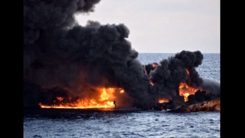 ปักกิ่ง 15 ม.ค.- สื่อจีนและเจ้าหน้าที่ญี่ปุ่นแจ้งว่า พบคราบน้ำมันเป็นระยะทางยาว 16 กิโลเมตรหลังจากเรือบรรทุกน้ำมันอิหร่านจมลงในทะเลจีนตะวันออก และยังคงมีกลุ่มควันดำลอยจากจุดที่เรืออับปาง