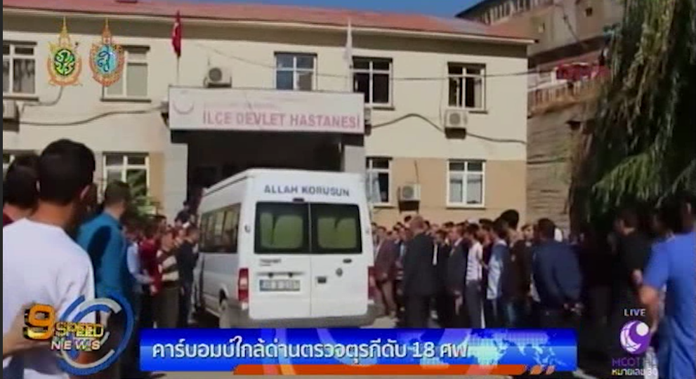 ตุรกี 9 ต.ค.-เหตุคาร์บอมบ์ใกล้ด่านตรวจความมั่นคงในจังหวัดฮัคคารี ของตุรกี มีผู้เสียชีวิตอย่างน้อย 18 ราย เป็นทหาร 10 นาย พลเรือน 8 คน และบาดเจ็บรวม 26 คน