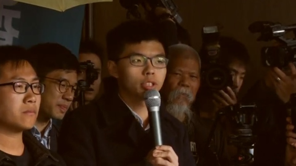 นายหว่องวัย 21 ปี รับสารภาพต่อข้อกล่าวหาดังกล่าว ขณะนี้เขาอยู่ระหว่างฎีกาโทษจำคุก 6 เดือนในอีกข้อหาที่เกี่ยวข้องกับการปักหลักประท้วงดังกล่าวหรือที่เรียกว่า การประท้วงร่ม ผู้พิพากษาศาลสูงระบุในคำตัดสินว่า นายหว่องมีส่วนเกี่ยวข้องทั้งในทางลึกและทางกว้างกับการขัดขวางการรื้อถอนเต็นท์ปักหลักประท้วง ถือเป็นแกนนำในวันนั้น โทษที่เหมาะสมจึงเป็นการจำคุกโดยทันทีสถานเดียว นอกจากนี้ผู้พิพากษายังตัดสินจำคุก 4 เดือน 15 วันกับนายราฟาเอล หว่อง นักเคลื่อนไหววัย 29 ปีเพราะขัดขวางการรื้อถอนเต็นท์ปักหลักประท้วงเช่นกัน ผู้พิพากษาไม่อนุญาตให้ประกันตัวบุคคลทั้งสอง แต่ทนายความยื่นขอให้ทบทวนการตัดสินใจและเปิดการไต่สวนอีกครั้งในบ่ายวันนี้