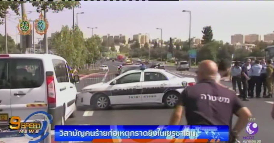 เยรูซาเลม 9 ต.ค. – เกิดเหตุชายชาวอาหรับที่อยู่ในรถยนต์ เปิดฉากสาดกระสุนใส่ประชาชนที่ยืนรอรถราง ใกล้กับกองบัญชาการตำรวจแห่งชาติ ทำให้มีผู้ได้รับบาดเจ็บ 8 คน สาหัส 2 คน หลังจากนั้นมือปืนได้ขับรถหลบหนีไป โดยมีตำรวจสายตรวจออกติดตามจับกุมตัว และมีการยิงตอบโต้กันเป็นระยะ ทำให้คนขับรถ ซึ่งเป็นสตรีถูกยิงได้รับบาดเจ็บ ส่วนมือปืนถูกตำรวจยิงเสียชีวิต ทั้งนี้ ในปีที่แล้วมีชาวปาเลสไตน์เสียชีวิตจากเหตุรุนแรงในเขตเวสต์แบงค์, เยรูซาเลมตะวันออก และฉนวนกาซ่า รวม 220 คน และมีชาวอิสราเอลเสียชีวิตจากการถูกทำร้าย 33 คน ชาวอเมริกัน 2 คน และส่วนใหญ่ผู้ก่อเหตุมักลงมือคนเดียว. -สำนักข่าวไทย