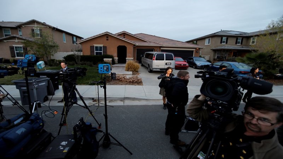ตำรวจเผยว่า กำลังตรวจทุกตารางนิ้วเพื่อหาหลักฐานเพิ่มเติมที่อาจจะช่วยปะติดปะต่อเรื่องราวที่เกิดขึ้นภายในบ้าน เพราะทั้งหลังถือเป็นสถานที่ที่เกิดอาชญากรรม รายงานระบุว่า เห็นตำรวจหลายคนเดินเข้าเดินออกบ้านหลังนี้ที่ตั้งอยู่ในเมืองเพอร์ริส ห่างจากนครลอสแอนเจลิสไปทางตะวันออก 113 กิโลเมตร ตำรวจบางคนสวมถุงมือถือกล่องและถุงนำสิ่งของภายในบ้านไปไว้ในรถที่จอดรออยู่ นอกจากนี้ยังเห็นกองดีวีดีสูงตั้งแต่พื้นขึ้นไปจรดเพดานภายในโรงรถของบ้านหลังนี้ ขณะที่ลักษณะภายนอกของบ้านดูไม่แตกต่างไปจากบ้านหลังอื่นในละแวกใกล้เคียงที่เป็นบ้านชั้นเดียวและสองชั้น