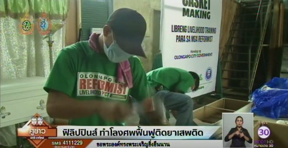 ฟิลิปปินส์ 9 ต.ค. – การปราบปรามยาเสพติดอย่างหนักของประธานาธิบดีโรดริโก ดูเตอร์เต แห่งฟิลิปปินส์ กลายเป็นข่าวดังไปทั่วโลก เพราะผู้ค้ายาเสียชีวิตไปนับพัน ขณะที่ผู้เสพยาต่างพยายามเข้าโครงการฟื้นฟูเพื่อเลิกยาเสพติด โดยที่เมืองโอลองกาโป ทางตอนเหนือของกรุงมะนิลา มีโครงการฟื้นฟูผู้ติดยาด้วยการสอนให้ทำโลงศพ นอกจากได้ทักษะในการทำโลงศพแล้ว ยังเป็นการเตือนสติผู้ติดยาเสพติดให้รู้ว่า หากยังเสพยาต่อไปก็ต้องไปอยู่ในโลงศพเร็วขึ้น